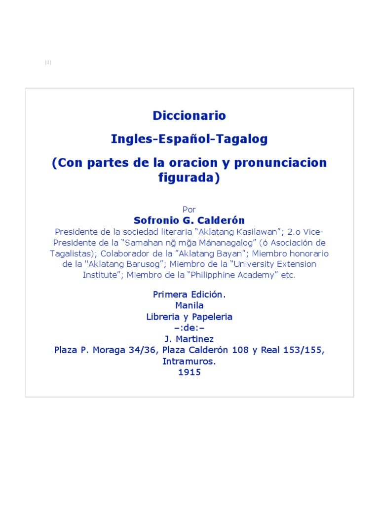 Diccionario Ingles Espa Ol Tagalog Con Partes De La Oraci N Y Pronunciaci N Figurada Pdf